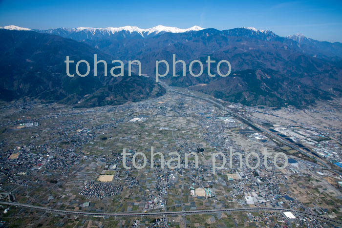 甲府盆地(釜無川より甲府市街地方面)(2019/4)