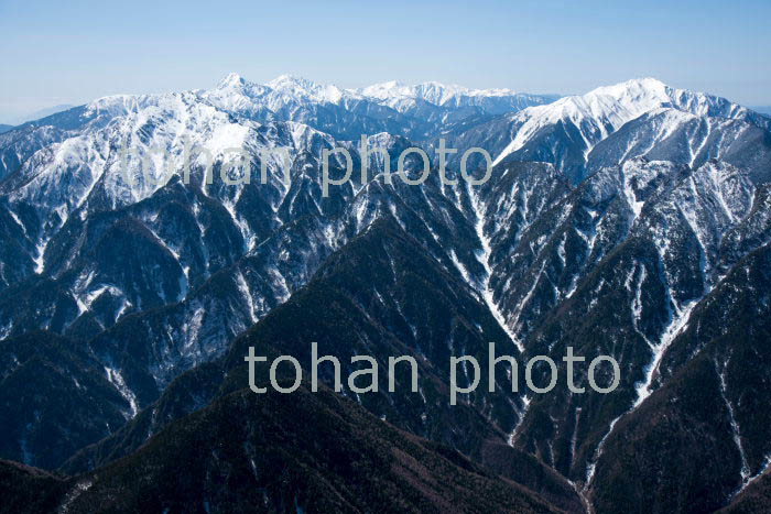 明石山脈の山並み(甲斐駒ヶ岳,北岳,塩見岳方面)2018/4