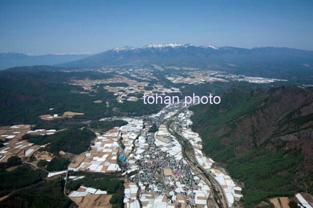 川上村周辺より八ヶ岳山麓とビニール畑群(2015/5)