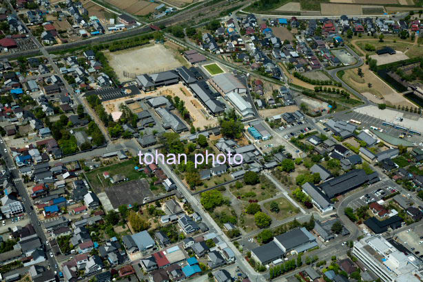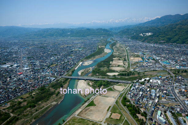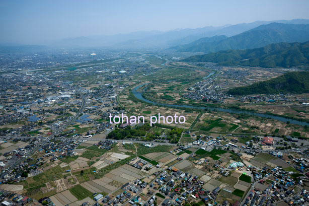 犀川緑地より犀川と川中島駅と街並み(2015/5)