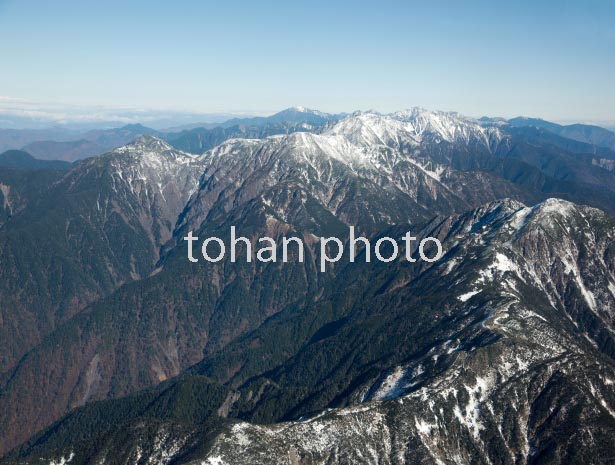 明石山脈(南アルプス)の山並み(茶臼岳から聖岳,赤石岳,荒川岳方面)(2016/6)