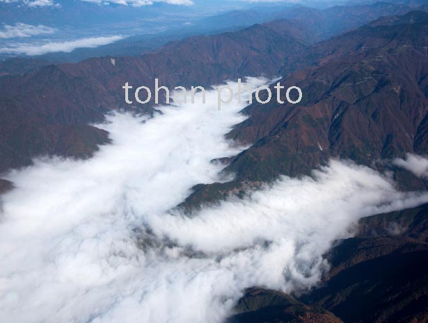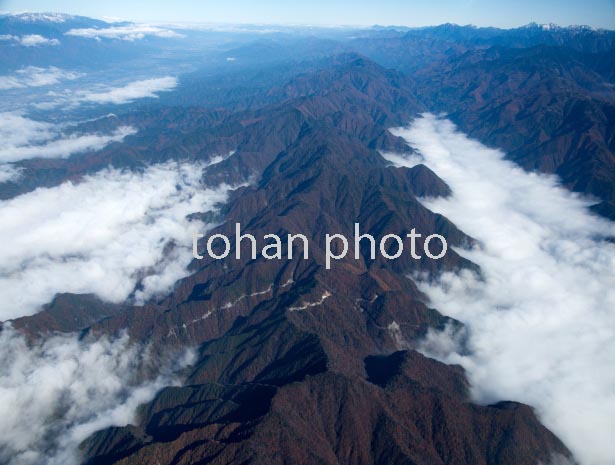 雲海と南信濃付近の黒石岳,鍵懸山,万古渓谷より金森山方面(2016/11)