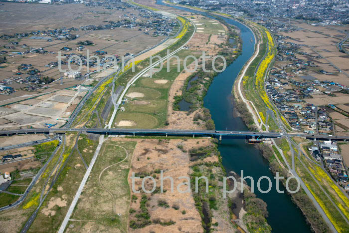 江戸川と土手に咲く菜の花(玉葉橋より上流)(2019/4)
