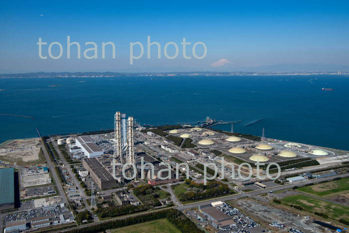 東京電力富津火力発電所と東京湾,富士山(2019/4)