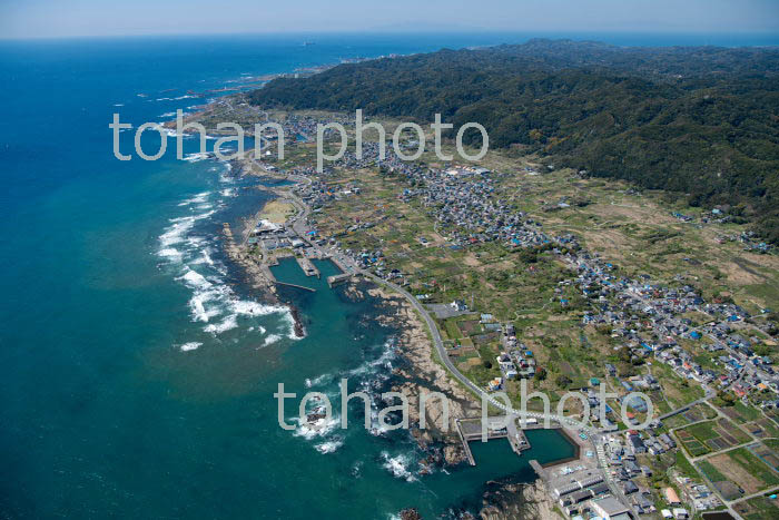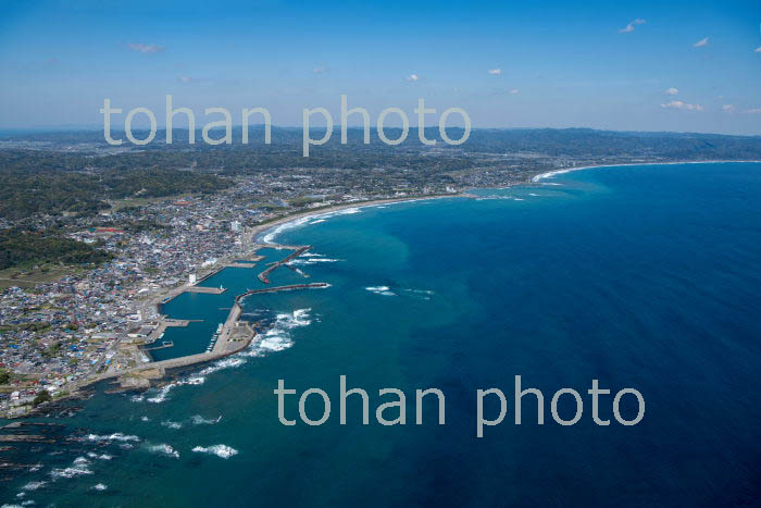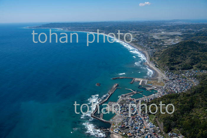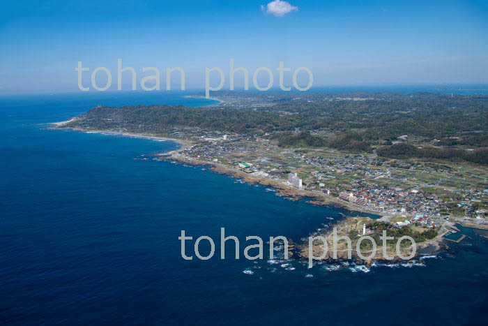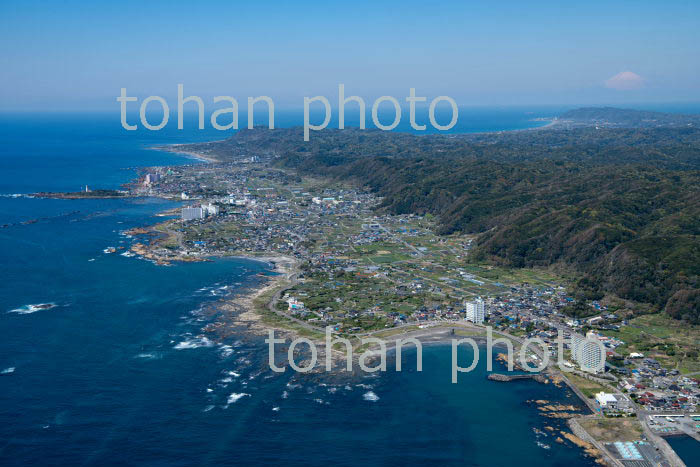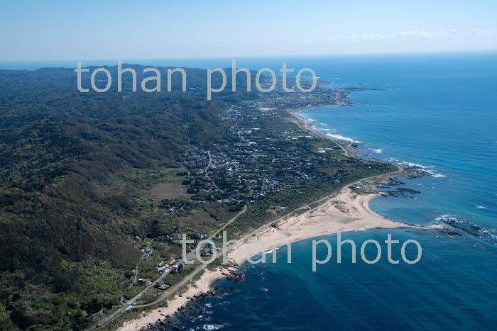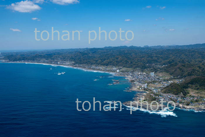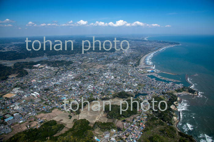 大原漁港と大原の町並みより九十九里浜(2019/4)