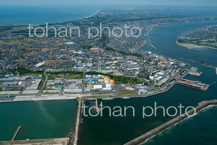 銚子漁港と利根川河口周辺より銚子市の街並み(2022/05)
