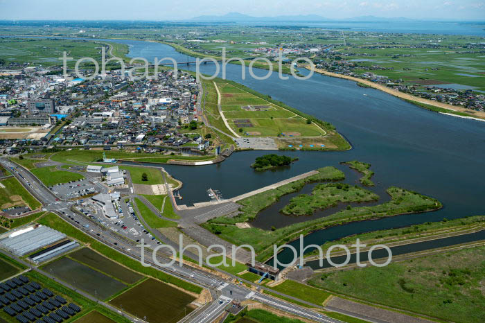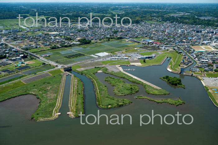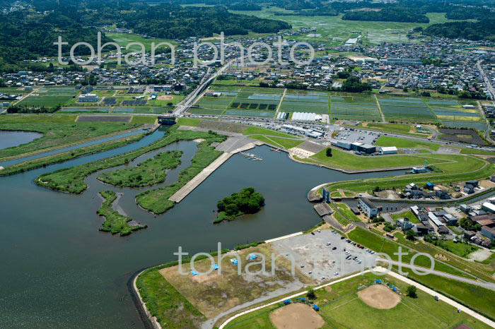 水の郷〔さわら〕地区と利根川より香取市の町並み(2022/05)