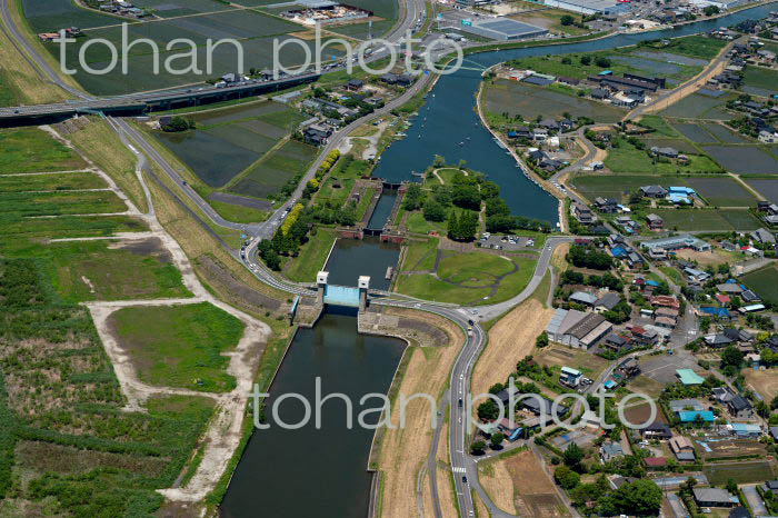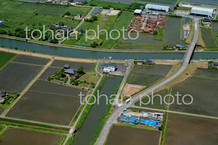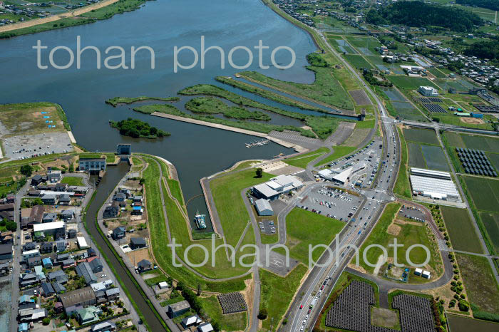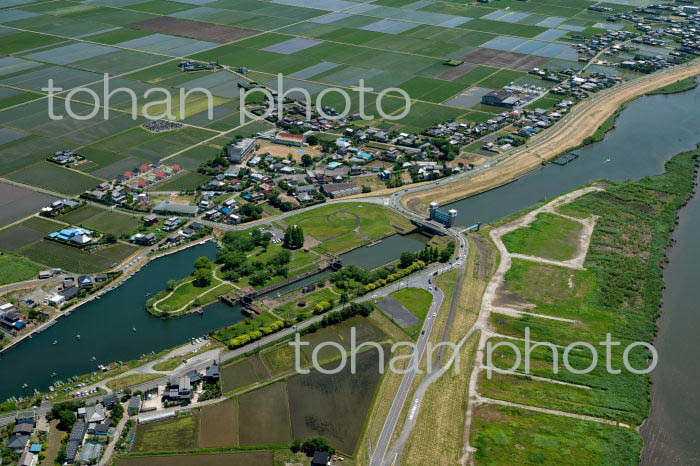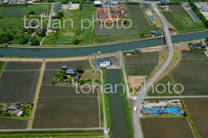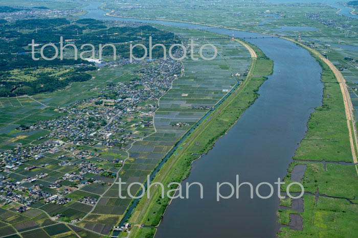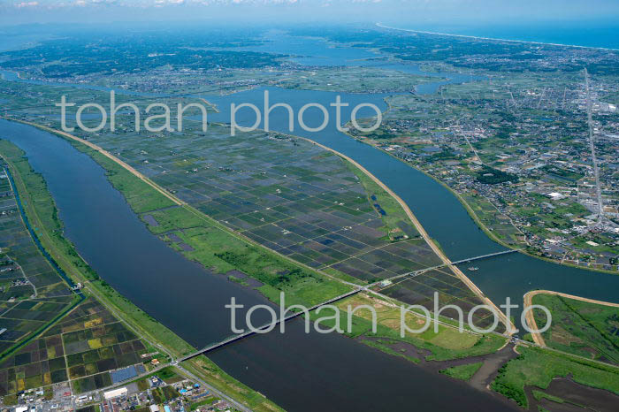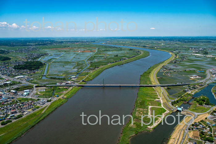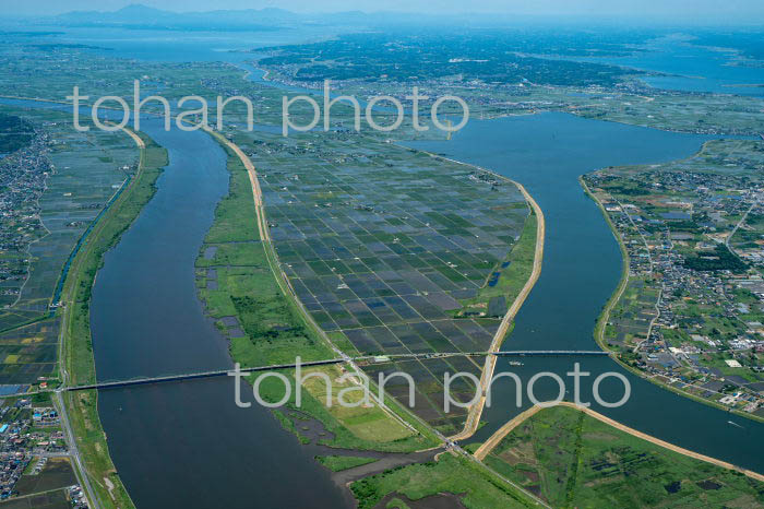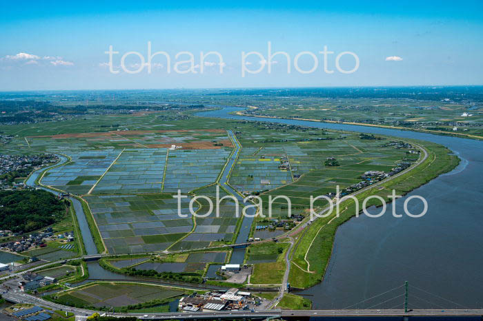 香取市の水田(三ノ分目,大倉,地区)と利根川,利根川橋の関東平野(2022/05)