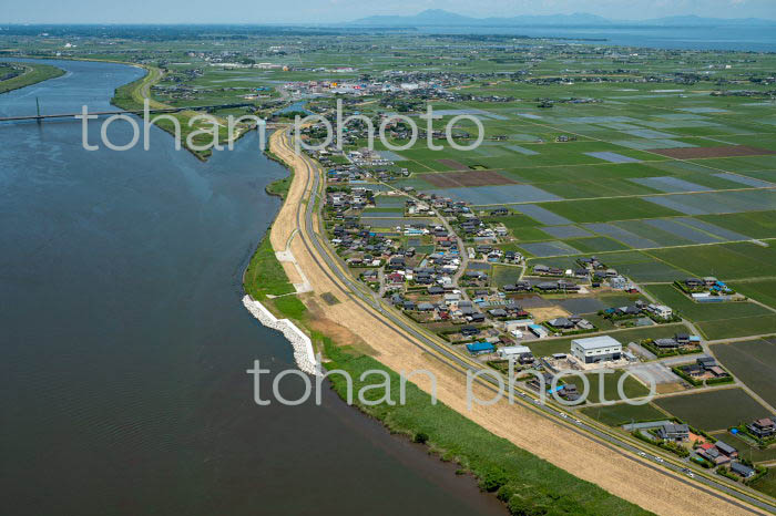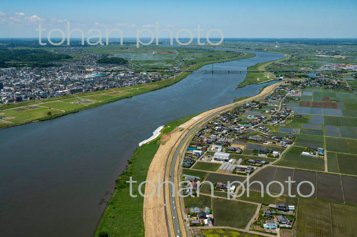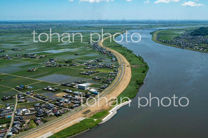 佐原北部の堤防と住宅地と利根川河口方面(2022/05)