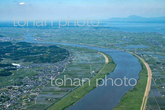 香取市北東側の水田と利根川より関東平野(2022/05)