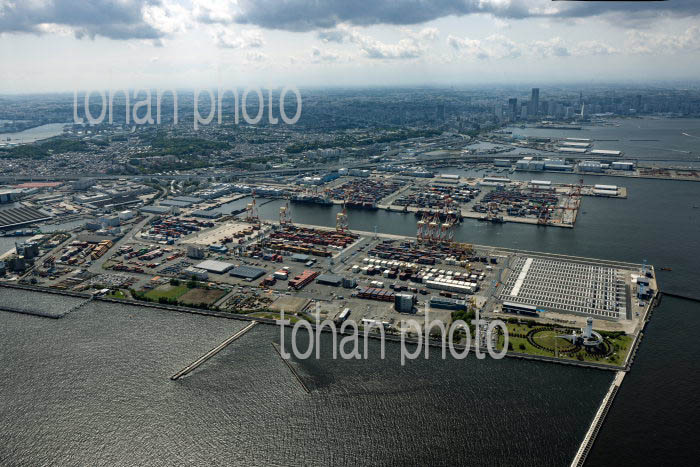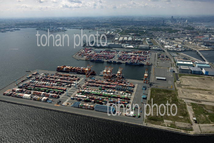 南本牧ふ頭コンテナターミナルより横浜の街並み