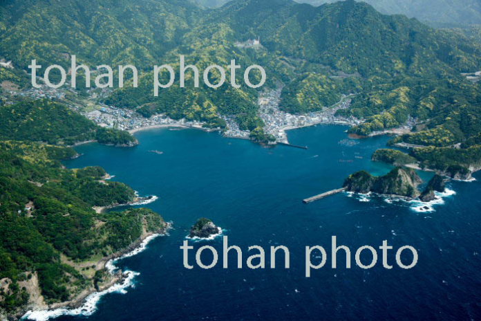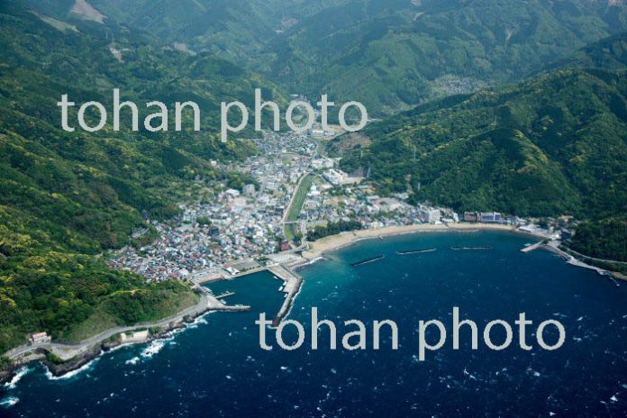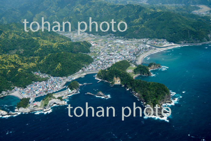 田子漁港と尊之島と田子瀬浜海岸(2017/5)