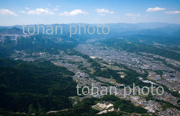 秩父盆地,秩父市街地と武甲山(2018/5)