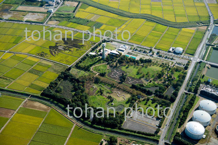 古代蓮の里と行田市の田んぼアート(大いなる翼とナスカの地上絵)小針地区(2018/10)
