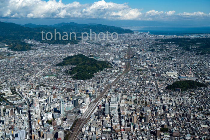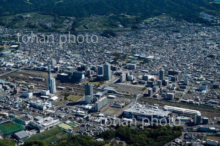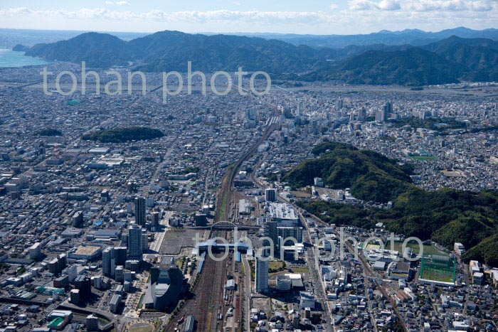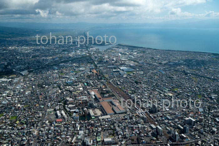 富士駅,新富士駅と市街地周辺より田子の浦,駿河湾(2020/10)