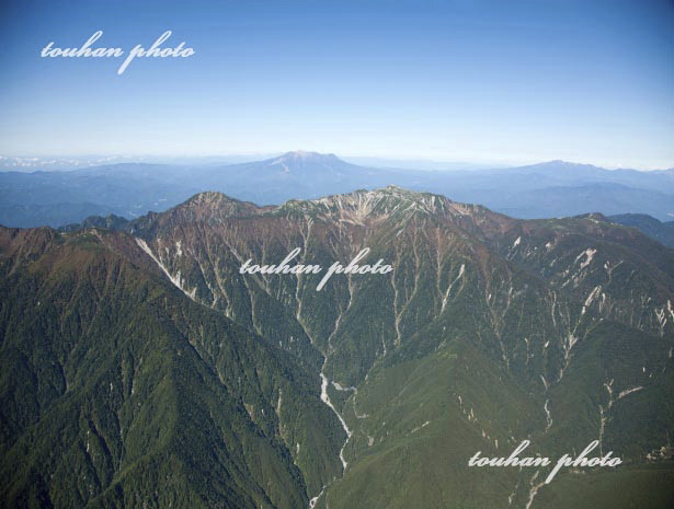 中央アルプス(三沢岳,宝剣岳,駒ケ根岳)後方御嶽山(2011/10)