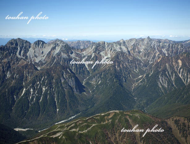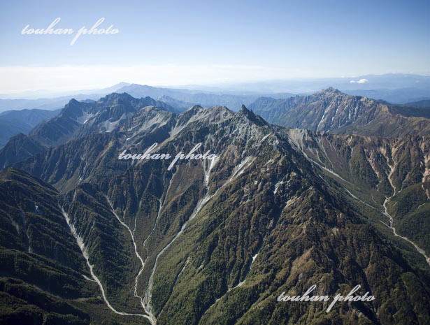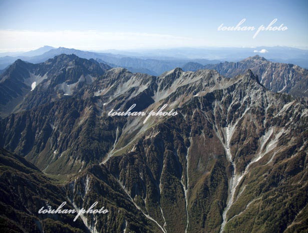蝶ヶ岳より穂高連峰(槍ヶ岳,北穂高岳)のカール群(2011/10)
