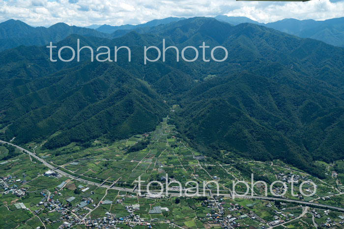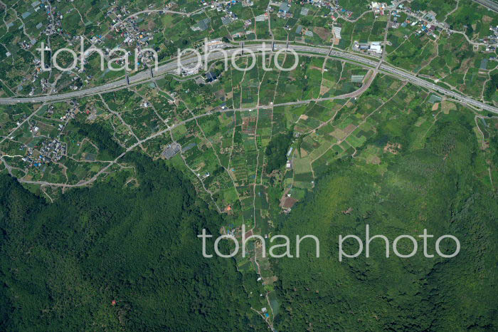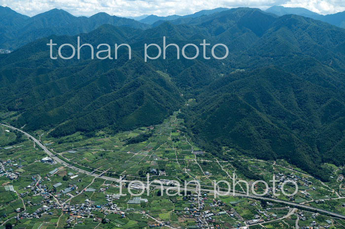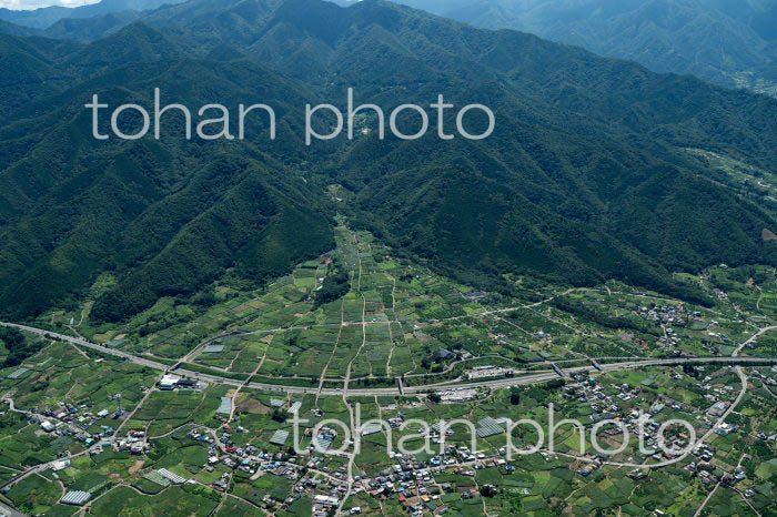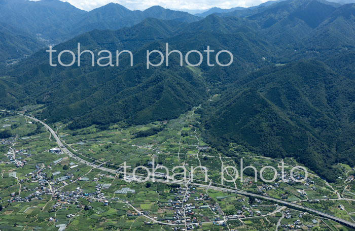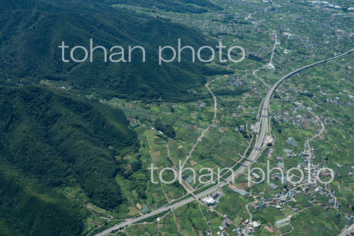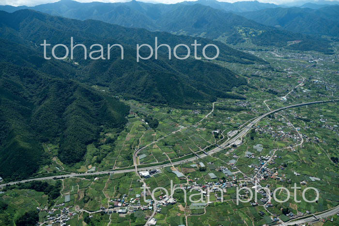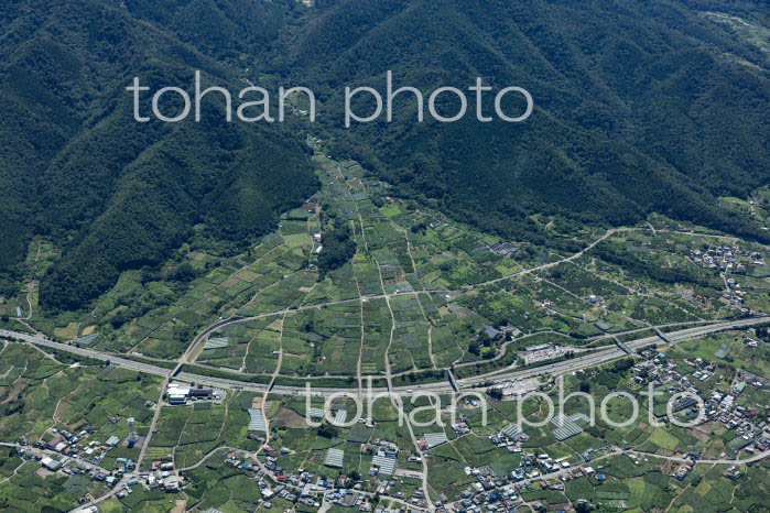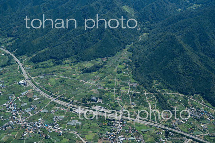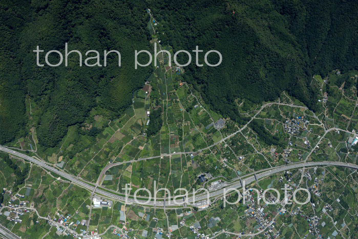 勝沼,一宮の扇状地と中央高速道路(釈迦堂パーキング付近)俯瞰撮影(2022/8)