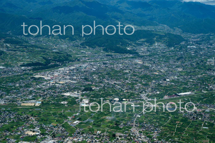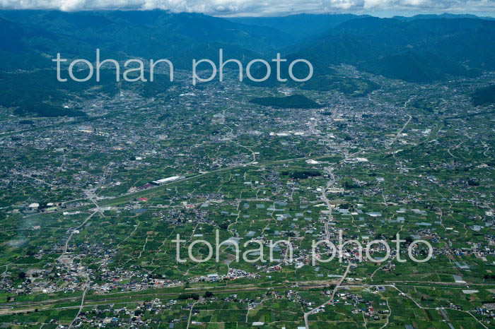 山梨市の町並みと桃とぶどう畑(2022/8)