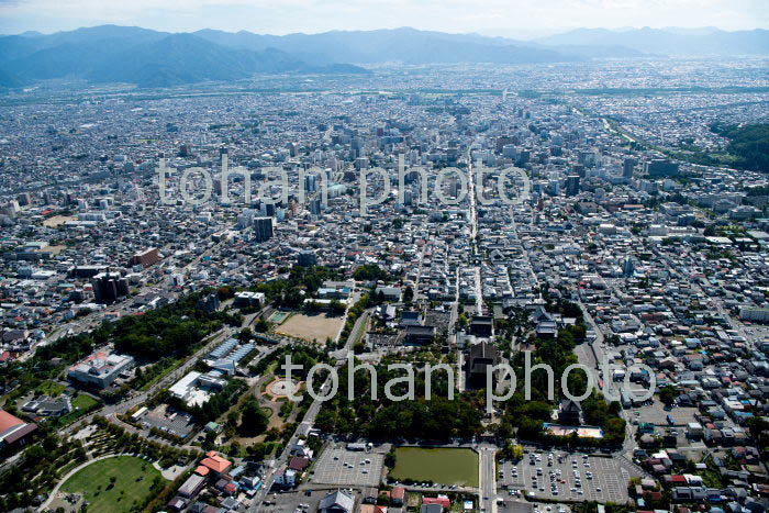 上田城跡,眞田神社(日本百名城)周辺より上田駅と上田市街地(2018/10)
