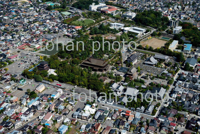 善光寺周辺より長野市街地と長野駅(2018/10)