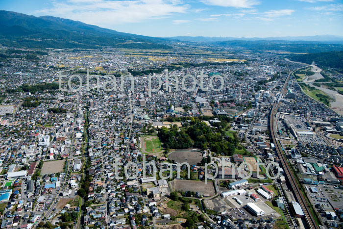 上田駅より上田城跡と上田市街地(2018/10)