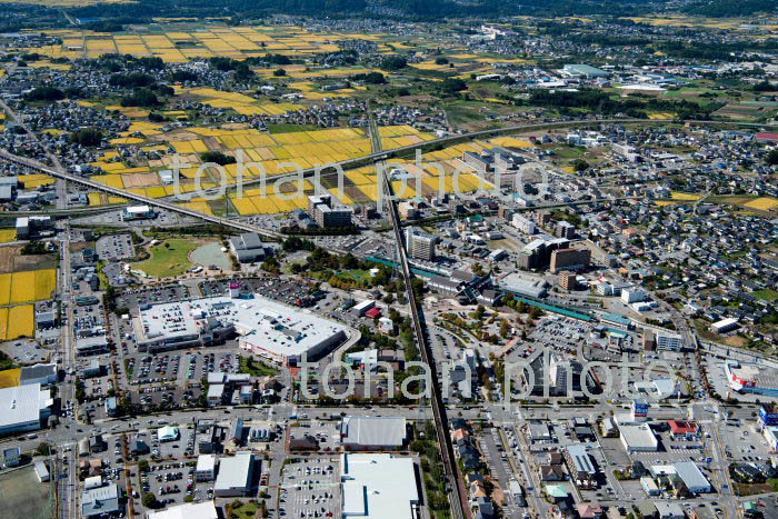 佐久平駅(都北陸新幹線,八ヶ岳高原線)と街並みと佐久盆地(2018/10)