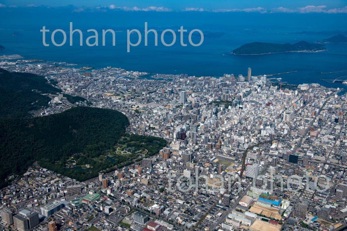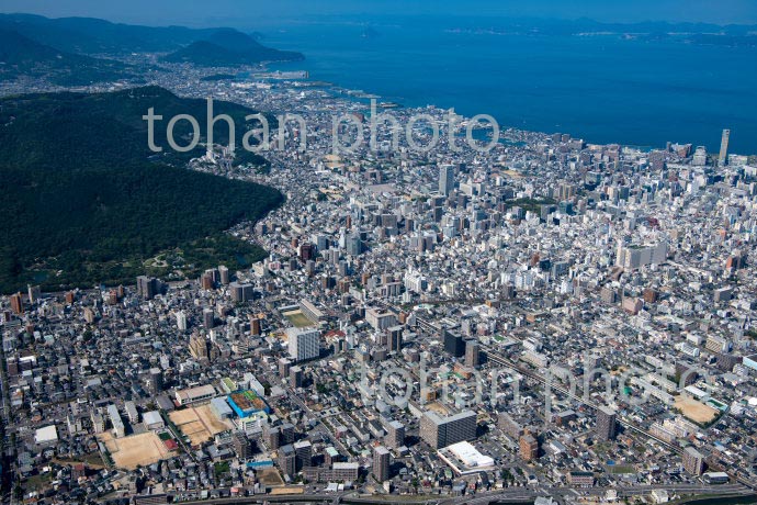 萩市街地全景(三角州)海より陸地方面(2014/9)