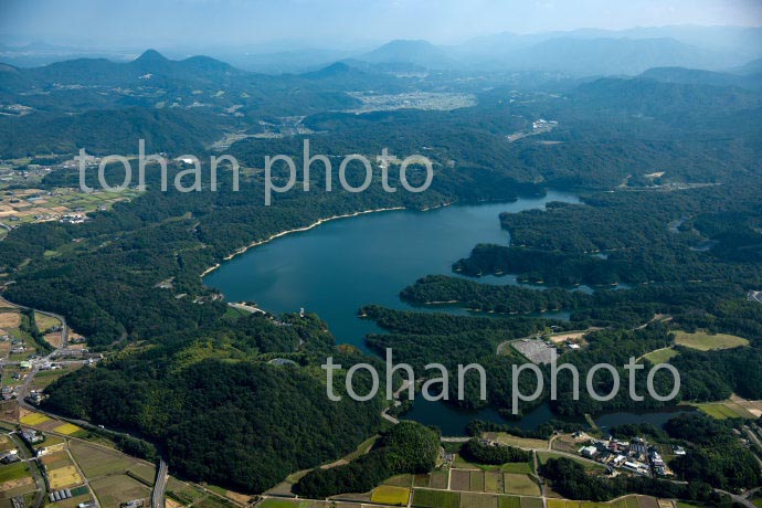 菊ケ浜海水浴場と萩市街地(2014/9)