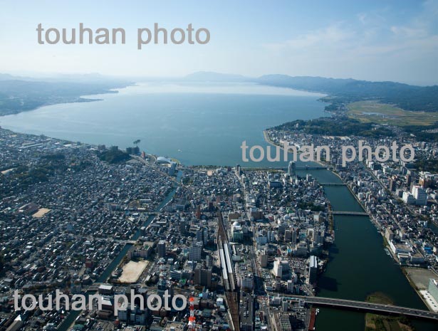 松江駅と松江市街地より宍道湖(松江大橋,宍道湖大橋)(2013/10)