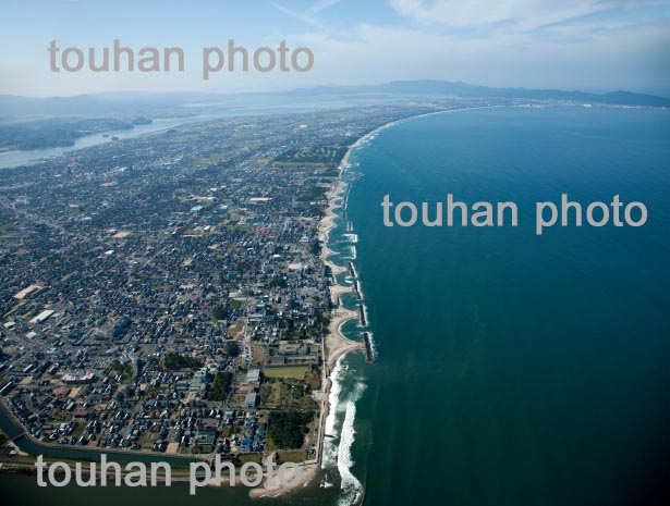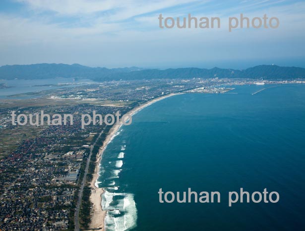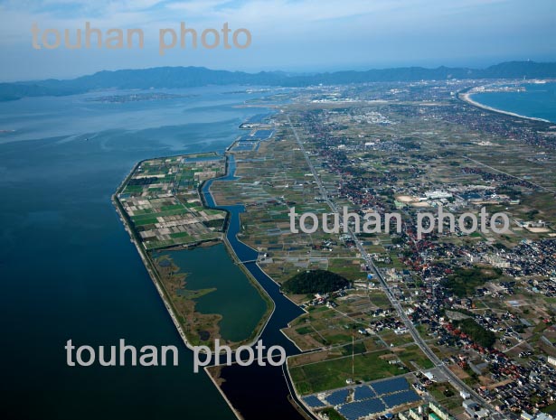 弓ヶ浜の海岸線と三保湾(弓ヶ浜より境港)(2013/10)