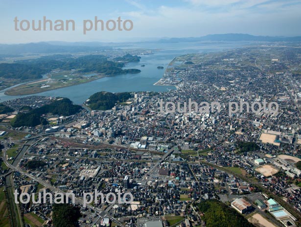 米子水鳥公園より中海,米子の街並み(2013/10)