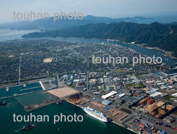 境港港の客船飛鳥Ⅱより境港市街地(2013/10)