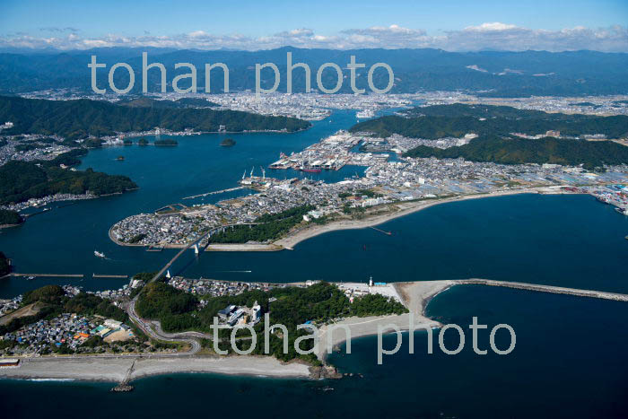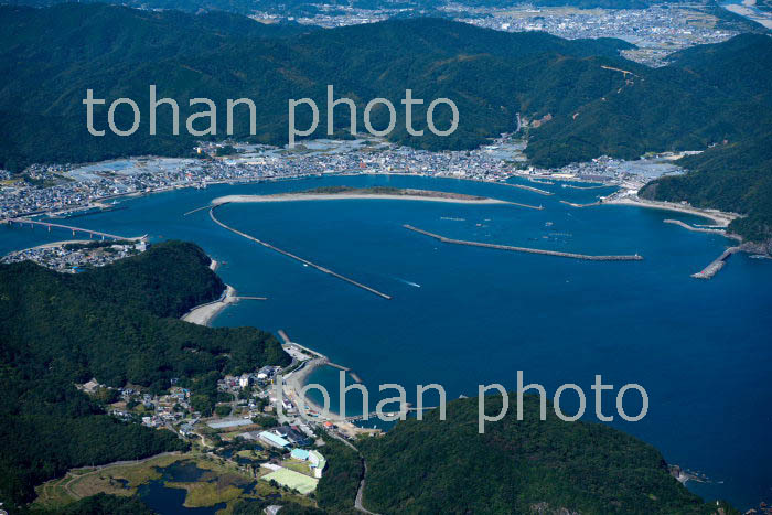 宇佐湾と宇佐漁港と宇佐町の街並み(2018/10)