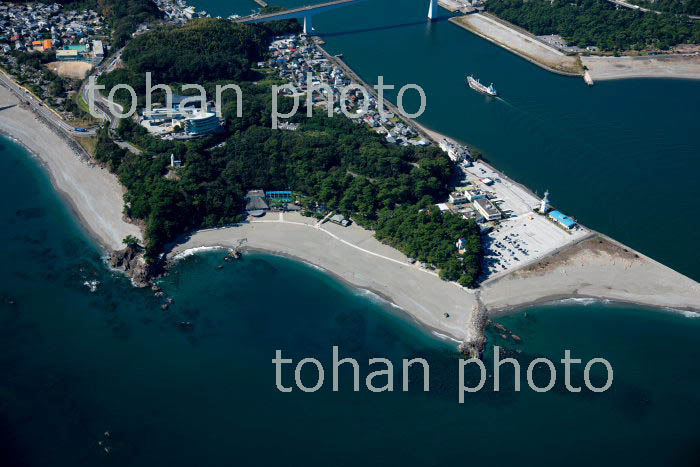 桂浜(日本の渚百選)竜頭岬周辺より浦戸湾と高知港と高知市街地(2018/10)