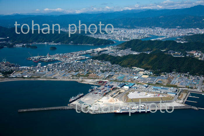 高知新港ターミナル,高知新港周辺より高知港と高知市街地(2018/10)