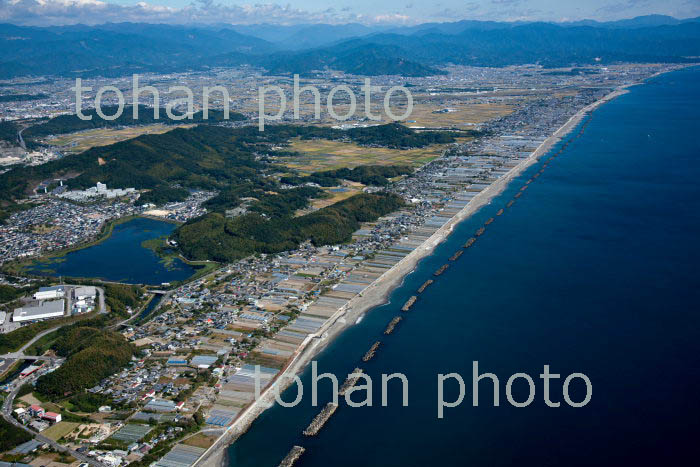 高知市より南国市の土佐湾海岸線のビニールハウス群(2018/10)