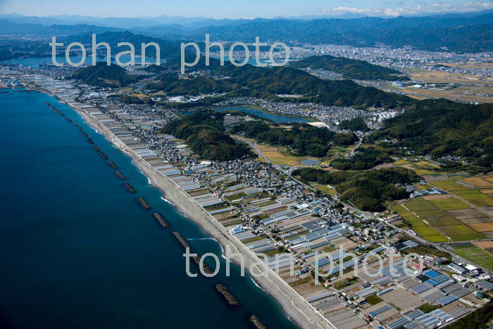 南国市より高知市の土佐湾海岸線のビニールハウス群より高知市街地(2018/10)