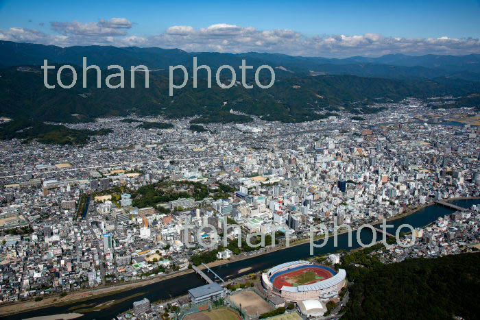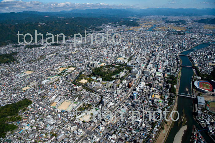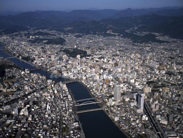 四万十市の街並みと中村城跡,四万十川橋,四万十川(2018/10)