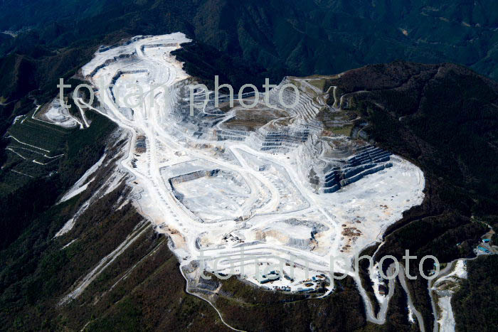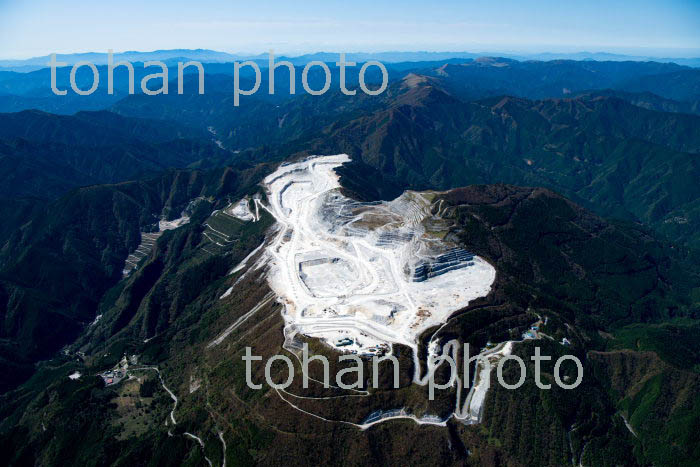鳥形山山頂の石炭石採掘地区より四国カルスト(2018/10)