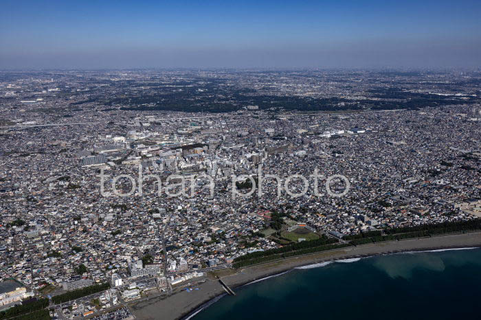 茅ヶ崎海岸より茅ヶ崎駅と街並み(20241103)