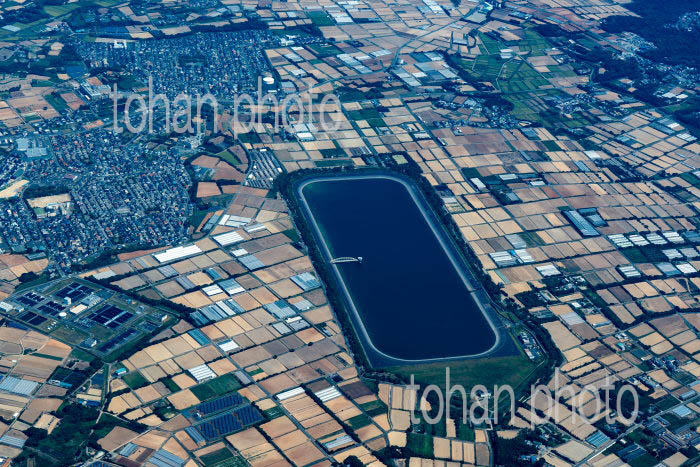 万場調整池と周辺の畑