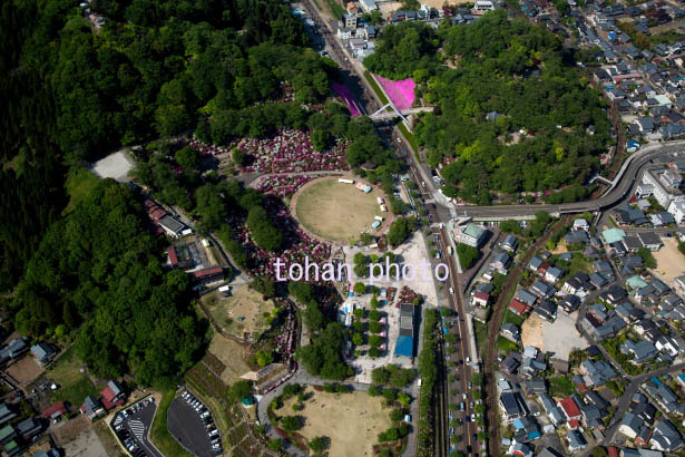 北陸道の道路わきの西山公園とつつじ(2015/5)