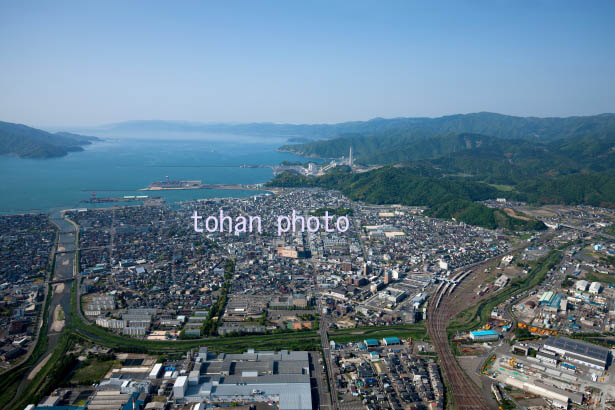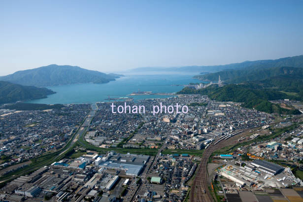 敦賀駅と敦賀市街地より敦賀湾(2015/5)