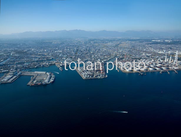 伊勢湾より津松坂港と津市街地(2016/6)