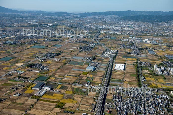 奈良平野(条里地割)中央は西名阪自動車道(天理パーキング)周辺(2016/11)
