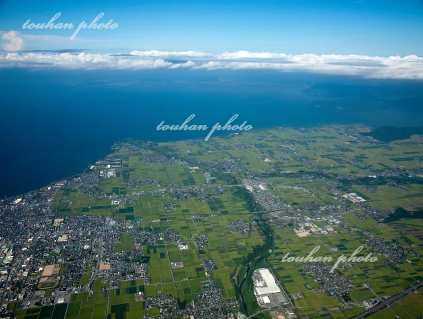 長浜の田園地区と姉川河口付近より琵琶湖(2012/8)