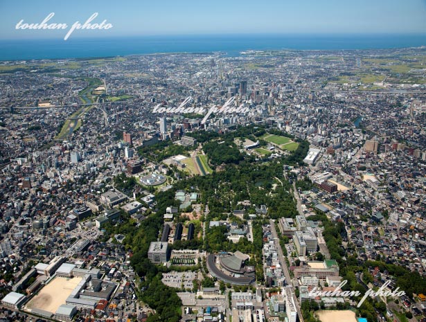 石川護国神社,兼六園,金沢城址周辺より金沢駅方面(2012/8)