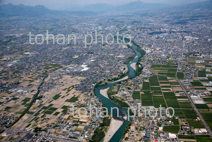 渡良瀬川より桐生市街地と桐生駅周辺(2018/5)