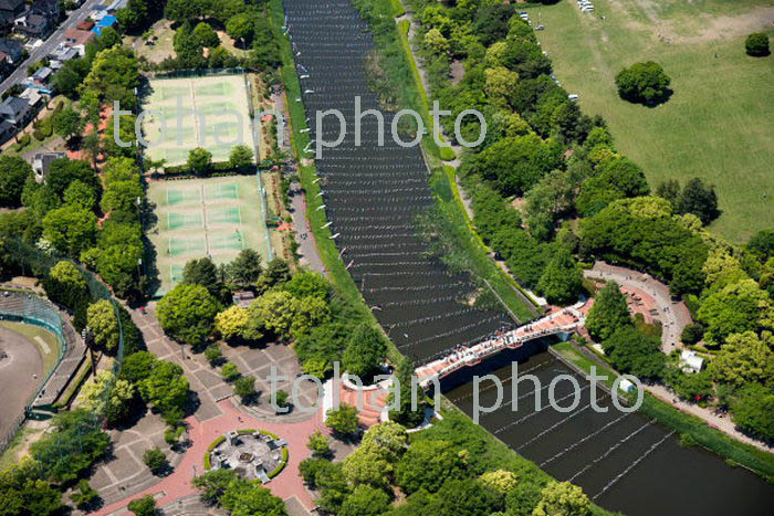 鶴生田川沿いのこいのぼりの群れと城沼,つつじが岡公園(2018/5)